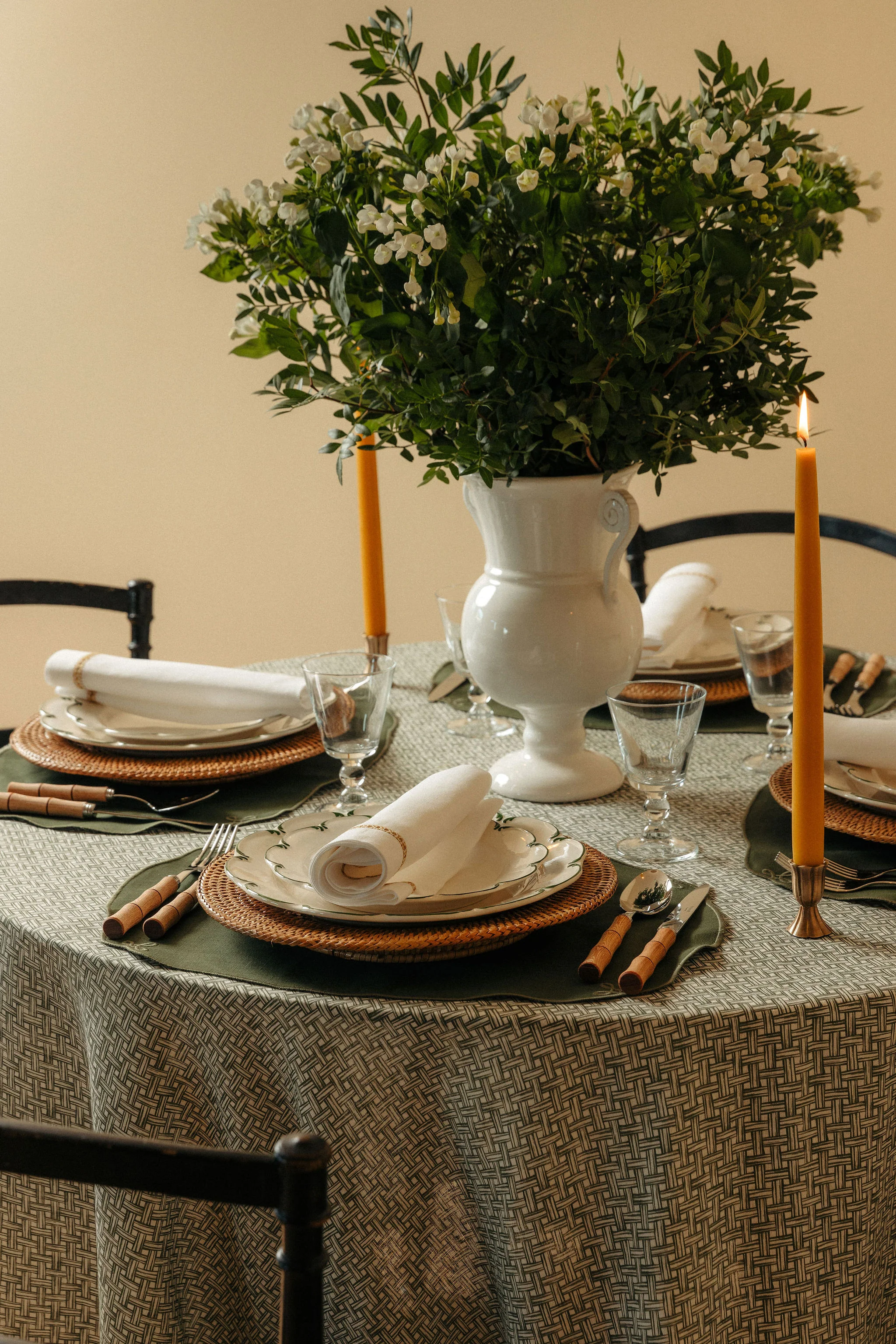 Our hand drawn basketweave design brings textural interest to the table for both formal and informal meals.